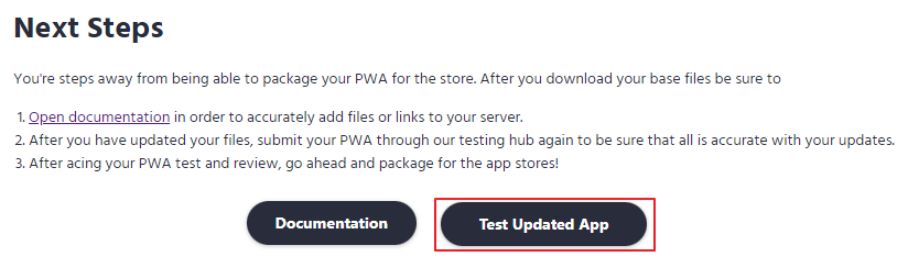 모든 환경을 구성을 하고 웹 사이트를 재배포를 한 뒤 Test Update App 버튼을 다시 클릭합니다.