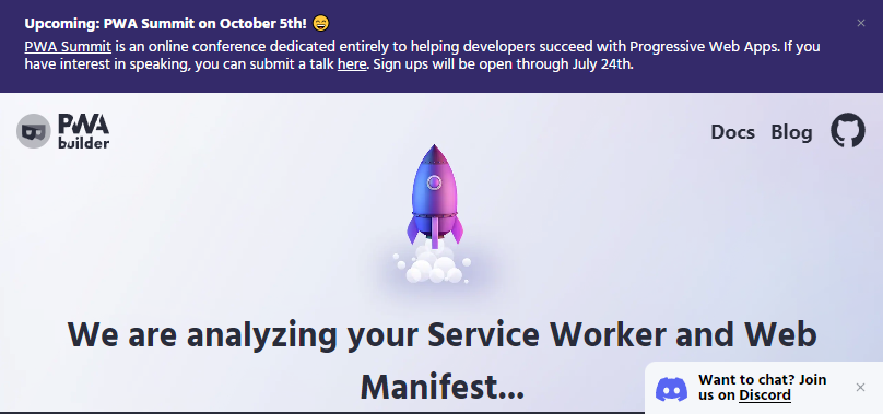 PWA를 만드는 방법은 여러 방법이 있는 것으로 파악되었습니다. 저는 그중에 MS에서 만든 Pwabuilder라는 툴을 사용해보려고 합니다. 먼저 https://www.pwabuilder.com/ 접속합니다. Enter the URL to your PWA 레이블에 변환하려고 하는 웹 사이트 주소를 입력합니다.