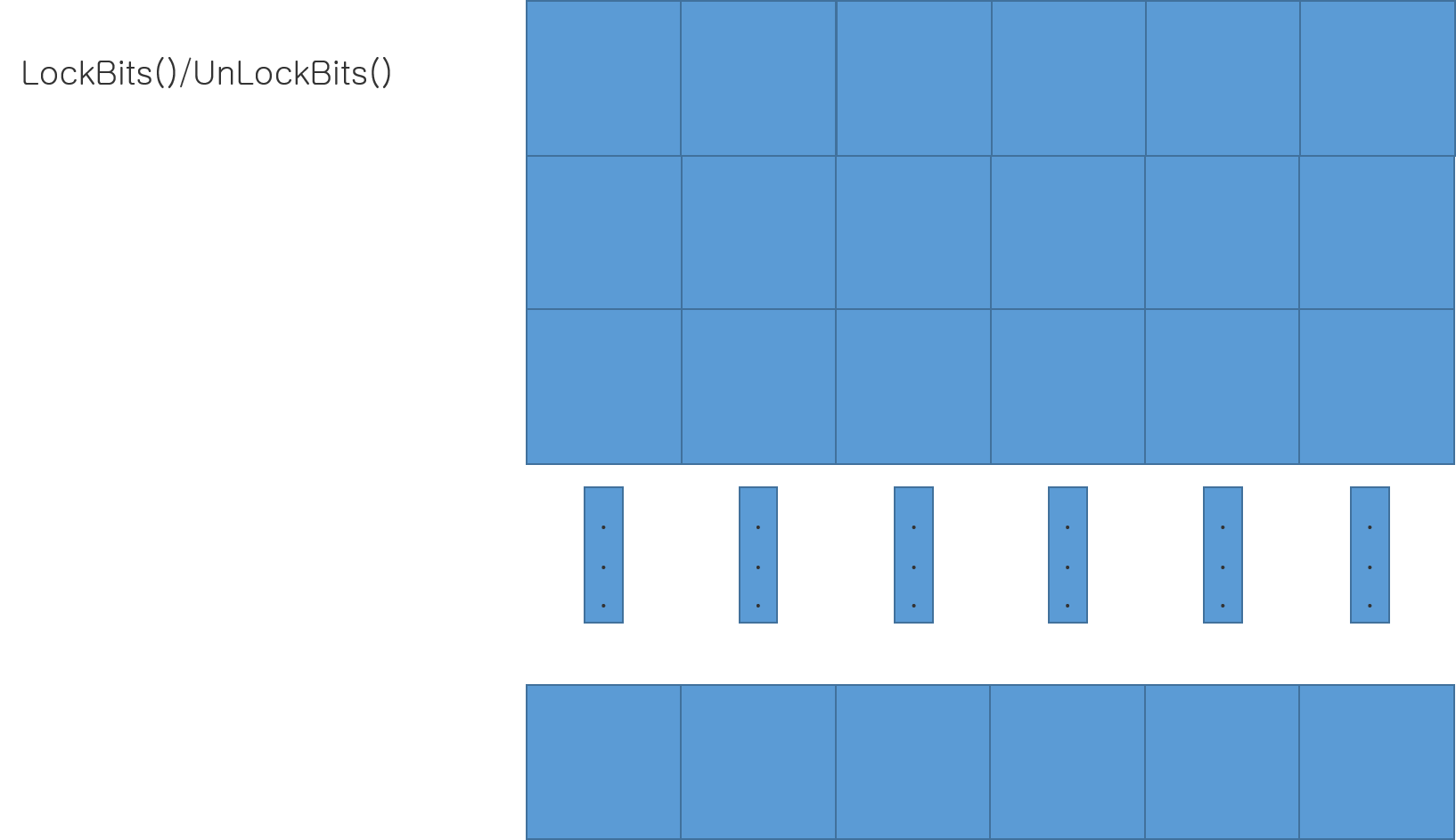 Android Bitmap, GDIPlus C# 등에 이미지 데이터에 접근할 때 LockBits 등의 API를 사용하여 픽셀 데이터를 접근한다. 픽셀 데이터에 접근하려고 할 때 GetPixel()/SetPixel 등의 메서드를 사용하는 작업은 속도가 느리다.