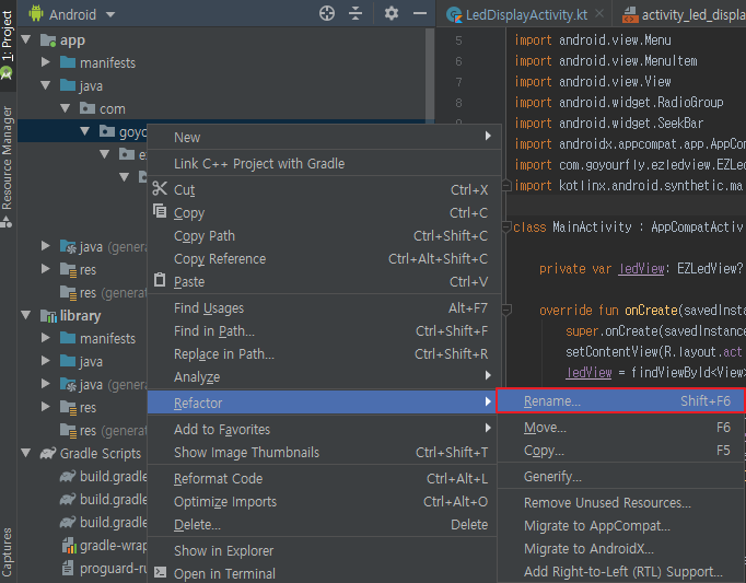 안드로이드 스튜디오에서 패키지 명을 변경하는 방법을 기술합니다.