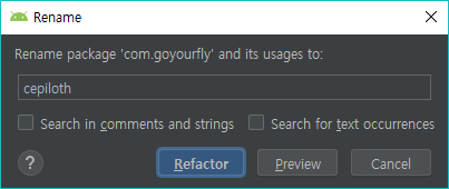 변경하고 싶은 패키지 명을 입력합니다.