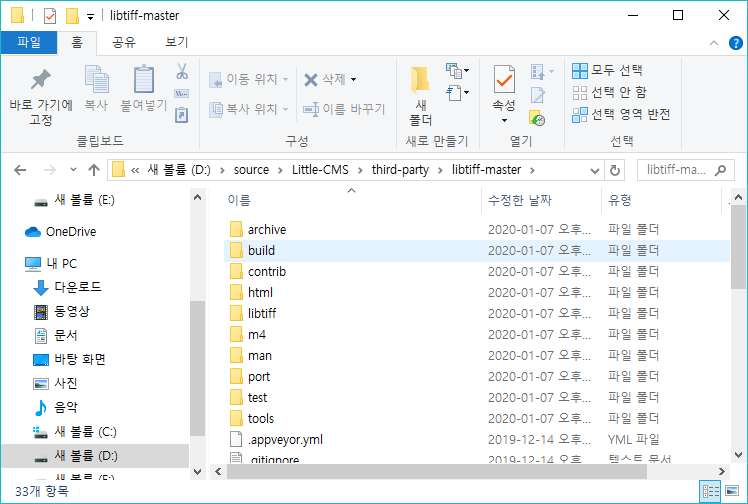 libtiff-master.zip 압축 파일을 third-party 폴더에 압축을 푼다.