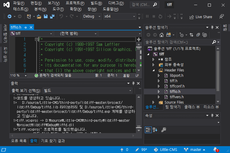 LCMS2, LIBJPEG, LIBTIFF 모두 따로 환경 설정 시에 손이 많이 가서 3가지 프로젝트를 Fork 하여서 통합하려고 한다. Visual Studio 2019에서 동작하도록 포스팅하겠다.