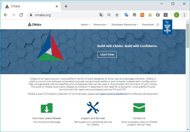 libtiff 환경 구성을 하기 위해서는 cmake 가 필요하다. 먼저 https://cmake.org/ 접속하여 cmake 최신 버전을 다운로드한다.