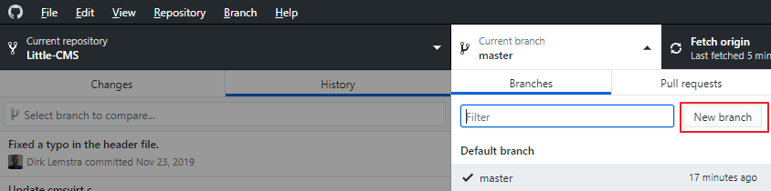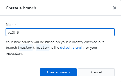 먼저 VC2019 환경 설정 하기전 new branch를 생성한다.
