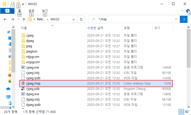 Release 된 경로로 이동하면 프로젝트이름.map 파일이 생성 된것을 확인 할 수 있다.