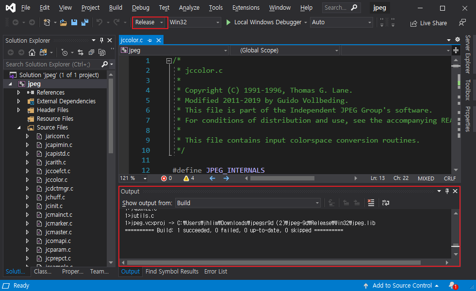 Visual Studio 2019 에서 실행후 release 로 빌드