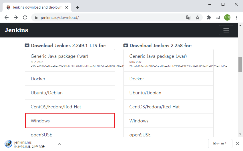 www.jenkins.io/ 접속하여 최신 버전의 Jenkins를 다운로드한다.