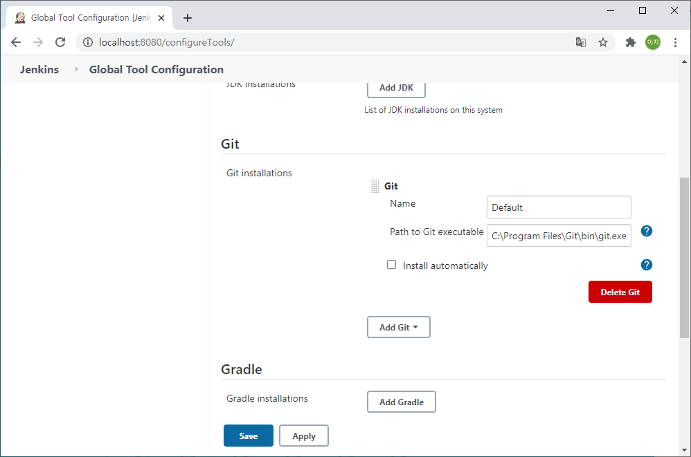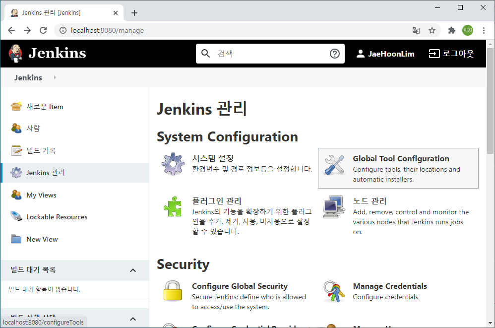Jenkins 관리 - Global Tool Configration 으로 이동합니다.