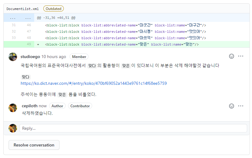 오픈소스컨트리뷰톤2020 으로 시작해서 한국어 관련한 맞춤법검사와 언어표기법에 대해서 공부하면서 평소에 잘못 사용하고 있는 문장과 단어들을 공부 할 수 있어서 좋다.