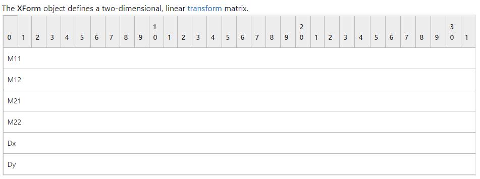 const XFORM *lpxf // 변환 데이터를 포함하는 XFORM 구조에 대한 포인터