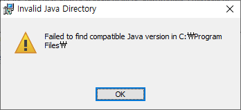 컴퓨터에 JDK 가 설치되어 있지 않는 경우에 아래와 같은 오류가 나타납니다. JDK 컴퓨터에 설치되어 있지 않거나 환경변수가 등록되어 있지 않아서 생기는 문제입니다. 필자의 경우는 컴퓨터 포맷으로 인하여 JDK 가 없는 상태입니다. 이번 포스팅은 JDK를 설치 관련하여 포스팅하겠습니다.