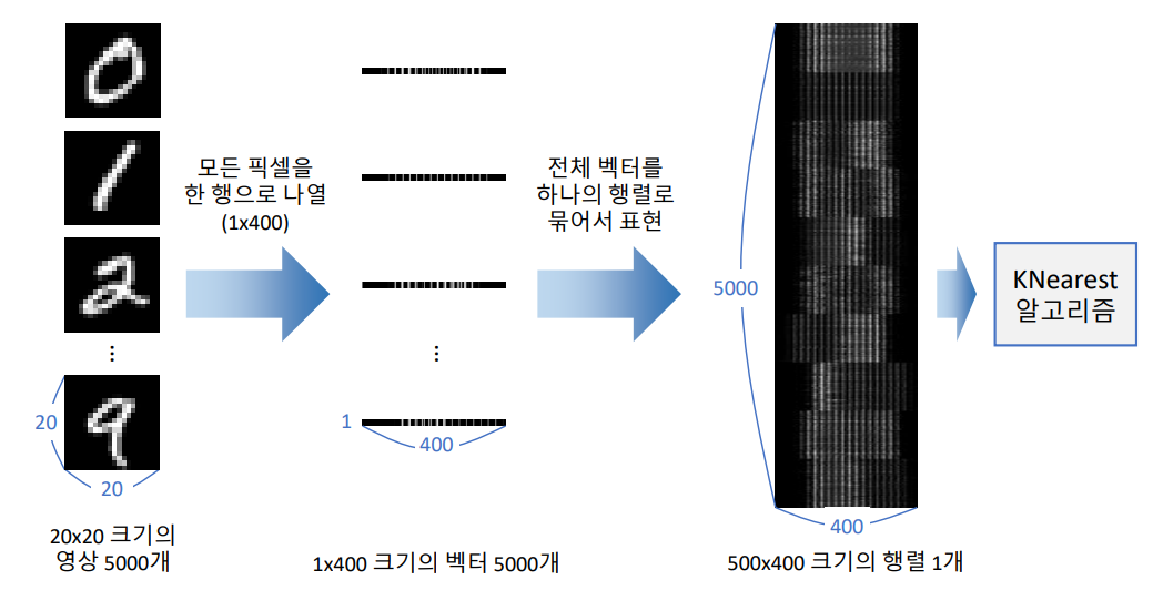 OpenCV 머신러닝 class 중 KNN 을 사용합니다.