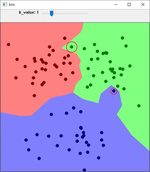 cv2.createTrackbar('k_value', 'knn', 1, 5, on_k_changed)