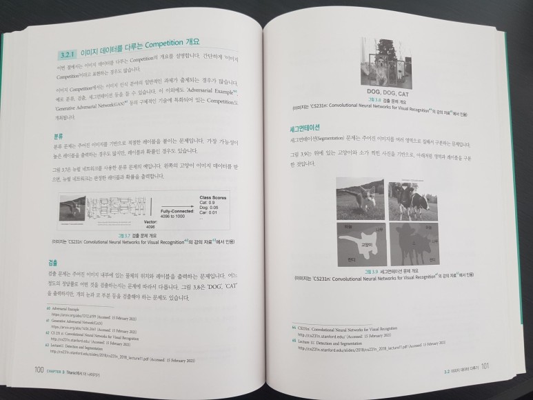 전반적인 기초지식을 쌓을 수 있다. 예를 들면 이미지 처리 분야에서는 목적에 따라 분류 모델은 CIFAR10 데이터 모델에 예를 확인할 수 있으면 생성 분야에서는 GAN에 대해서 소개한다. 또한 텍스트 처리 분야에서는 NLP(자연어 처리)에 대한 설명과 단어의 유사도를 찾는 WORD2 VEC에 대한 설명 최신 트렌드인 BERT을 소개한다.