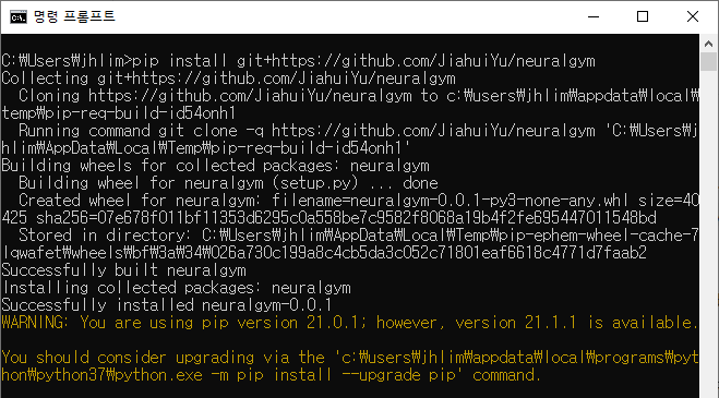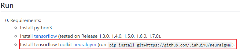 pip install neuralgym 명령어 실행시 동작하지 않는다.