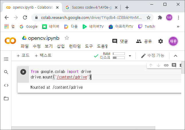 PC 방에서 OpenCV + Python 설치하다가 계속 실패해서 다른 방법을 찾아 보았다. 구글에서 제공하는 Colab 이라는 것을 사용하면은 다른 설치 없이 웹상에서 파이썬 모듈을 사용 할 수 있다고 한다. 이번 포스팅에서는 Colab 에 구글 드라이브 연동 하는 것을 작성 하기로 한다.