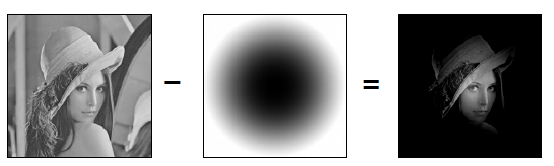 두 영상의 같은 위치에 존재하는 픽셀 값에 대하여 뺄셈 연산을 수행하여 결과 영상의 픽셀 값으로 설정