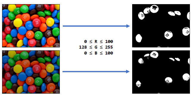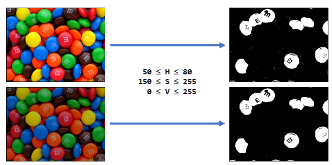 범위 안에 들어가는 픽셀은 255, 나머지는 0으로 설정
