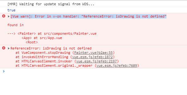 Painter.vue를 작성하는 도중 위와 같은 오류가 발생했다. 원인을 알고서는 나중에 허탈했다.
