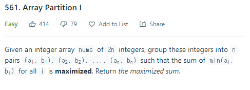 Array Partition I - LeetCode
