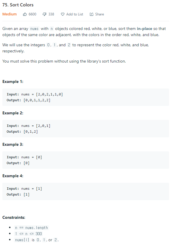 https://leetcode.com/problems/sort-colors/