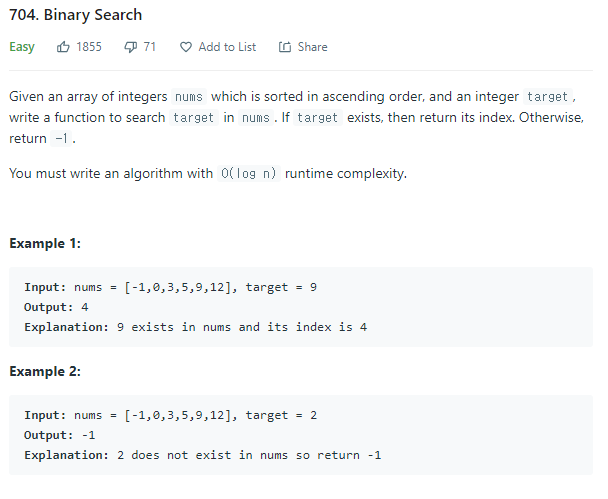 정렬된 nums를 입력받아 이진 검색으로 target에 해당하는 인덱스를 찾아라.
