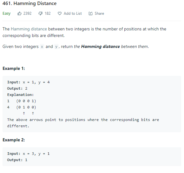 https://leetcode.com/problems/hamming-distance/
