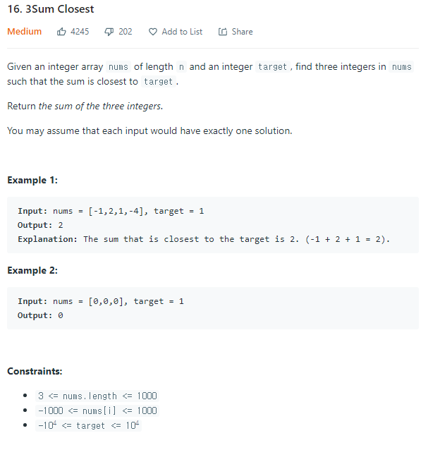 3Sum Closest - LeetCode