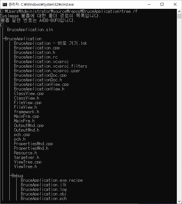 커맨드창에서 프로젝트가 생성된 경로에 tree /f 명령을 실행하면 전체 구조를 확인 할 수 있습니다.