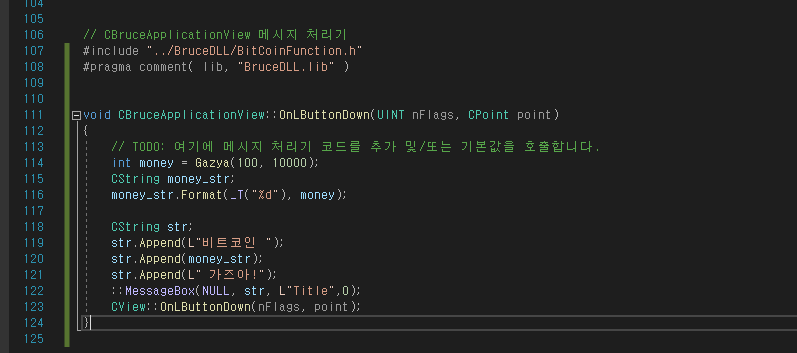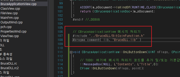 이제 ApplicationView.cpp로 가서 BitCoinFunction.h를 include 합니다.(입력 부분 잘보고 입력하세요.)