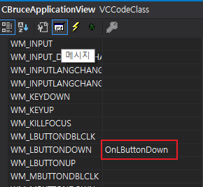 ApplicationView에서 메시지 처리기를 등록합니다. View 객체를 클릭했을 때 동작하도록 OnLButtonDown 이벤트를 등록하였습니다.