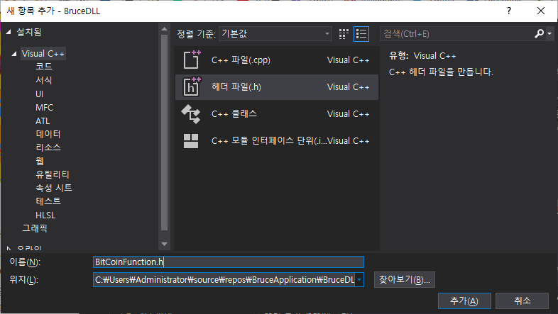 프로젝트 생성후 Header 파일을 임의의 이름으로 만든다.