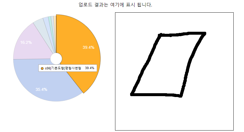 이외의 데이터 시각화를 하기 위하여 차트와 대시보드를 활용하는 방법도 소개한다. 필자의 경우 도형 인식 모델을 만들면서 데이터 수집 -> 데이터 증강 -> 데이터 전처리 등을 처리하면서 이 책에서 제시한 이상치 제거 및 의미 없는 데이터를 제거한 경험이 있다. 또한, 인식률을 객관적으로 개선되었다는 것을 보여주기 위해서 파이 차트를 사용하여 인식 결과를 아래처럼 시각화하였다.