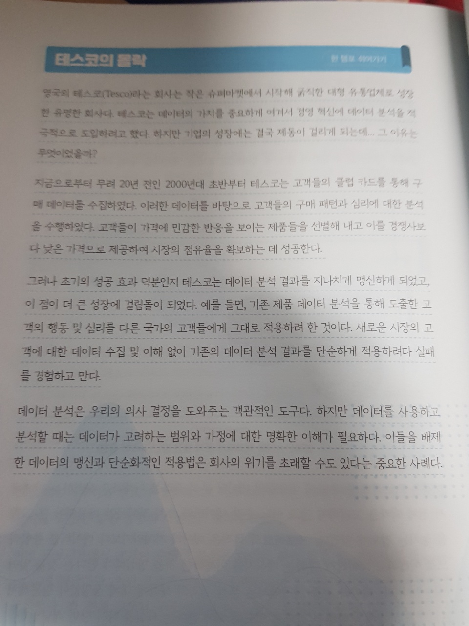 챕터별 주제와 설명이 일관적이며 마무리 부분에서는 챕터의 내용을 요약하여 정리가 되어 있다. 또 한, 데이터 활용 관련 사례를 특정 기업의 활용 사례를 예시를 들어 내용을 이해하는데 도움이 되었다.