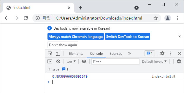 모질라 문서 경로를 참고하여 Math.sin() 메소드로 90 도를 출력해 보았다.