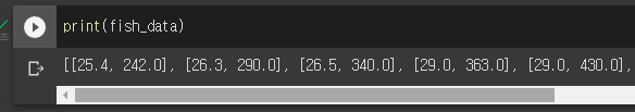fish_data = [[l, w] for l, w in zip(length, weight)]