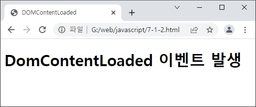 document.body.innerHTML += h1('DomContentLoaded 이벤트 발생')