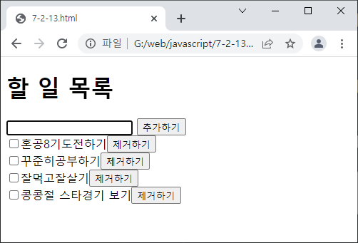 p.352 누적 예제를 활용하여 본인의 할 일 목록을 만들어 캡쳐하기.