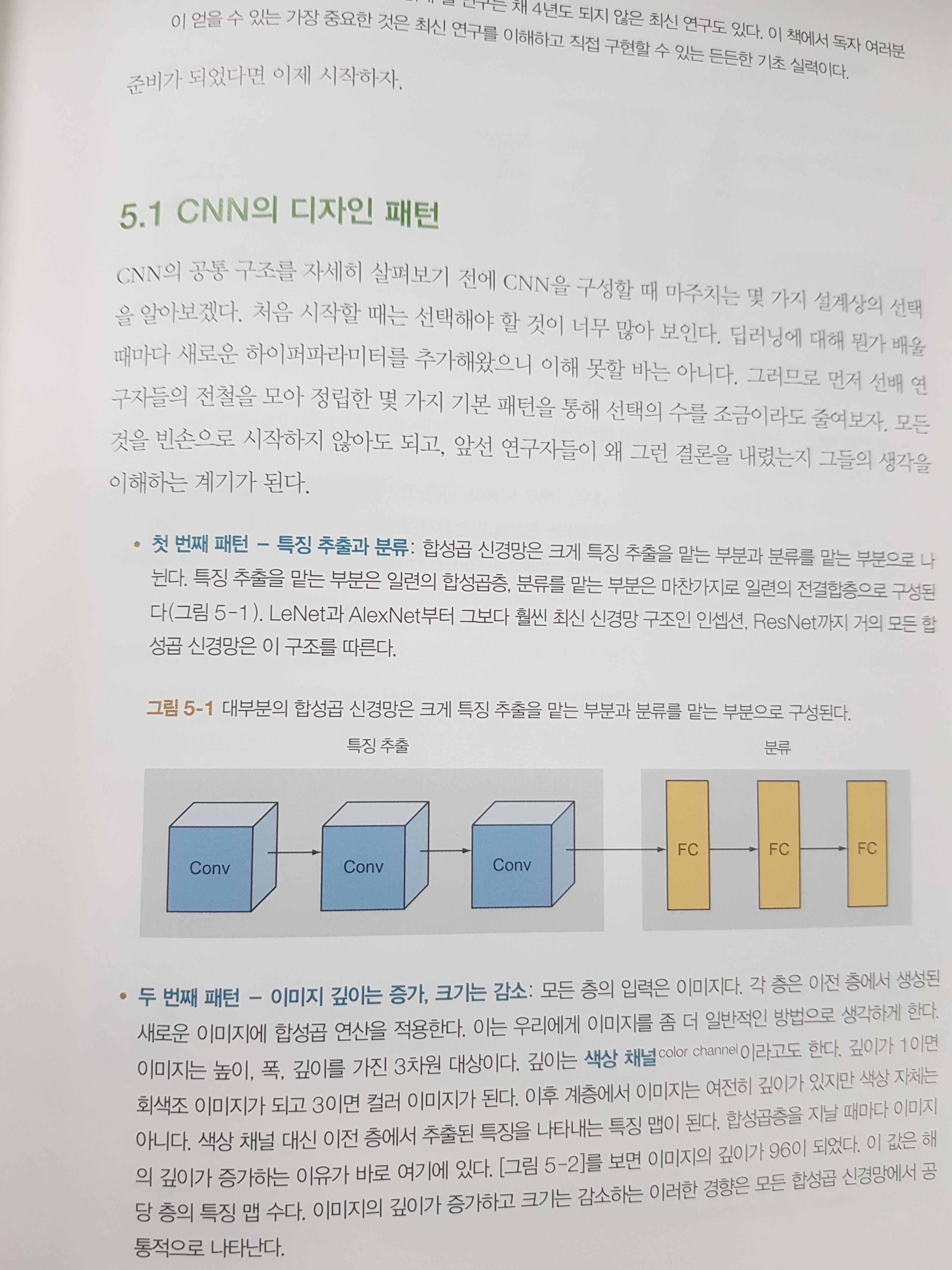 해당 내용은 딥러닝 관련 서적을 많이 보다 보면 공통적으로 이야기하는 부분이다. 비슷한 문제를 풀었던 다른 사람들의 신경망 설계를 답습하고 우리가 가진 데이터에 맞춰 신경망을 튜닝하는 것은 그다음 문제임으로 유명한 네트워크 모델의 구조를 설명하고 직접 모델을 만들어 보면 실습을 진행한다. 딥러닝 입문서 이기보다는 어느 정도 CNN을 이해한 이후에 보면은 도움이 된다고 생각한다.