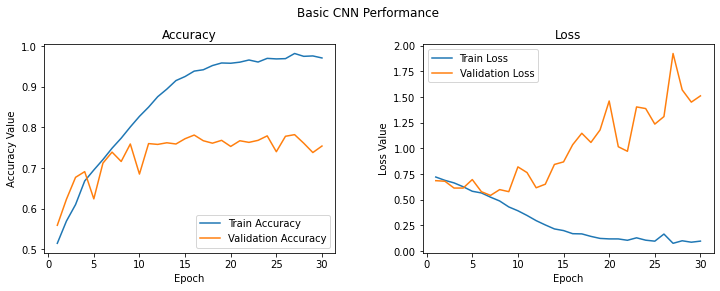 t = f.suptitle('Basic CNN Performance', fontsize=12)
