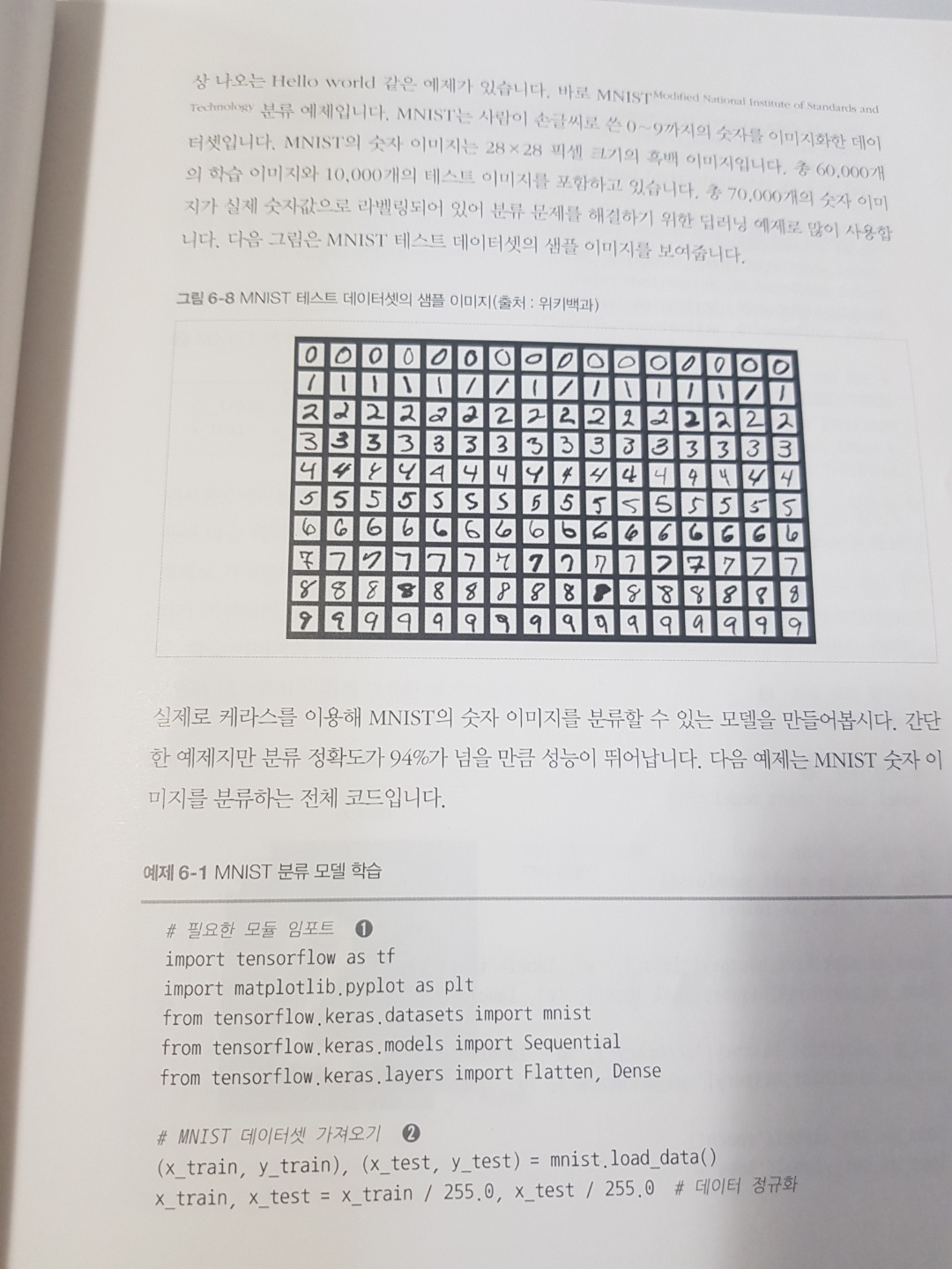 Chpater 6장은 딥러닝에 대한 기초와 인공신경망에 대해서 소개하고 KERAS를 이용한 MNIST 이미지 분류를 실습한다. 해당 챕터에서 느낀 점은 CNN이 이미지 처리에 만 특화되어 있다고 생각했었는데 임베딩 처리가 되어 수치로 표현 가능한 대상이면 CNN으로 모델을 학습 가능하다는 것 을 알 수 있었다. 또 한 RNN, LSTM, 양방향 LSTM 등의 모델을 학습 및 실습을 할 수 있다. 해당 Chapter는 직접 실습을 해보는 것을 추천한다.