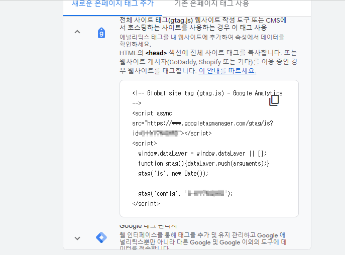 관리 - 데이터 스트림 - 새로운 온페이지 태그 추가