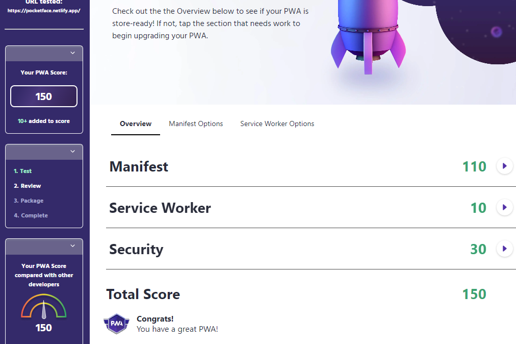 manifest.json 상에서 x-icon MIME type을 제거하고 다시 PWA 테스트를 실행합니다.