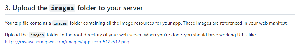 다운로드 파일을 압축을 풀게 되면은 next-steps.html 파일이 생성이 되는데 PWA를 구성하기 위한 방법을 가이드해줍니다. https://github.com/pwa-builder/pwabuilder-web/blob/V2/src/assets/next-steps.md를 참고하셔서 환경설정을 추가적으로 진행합니다.