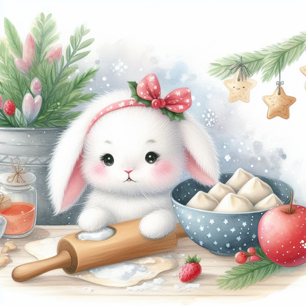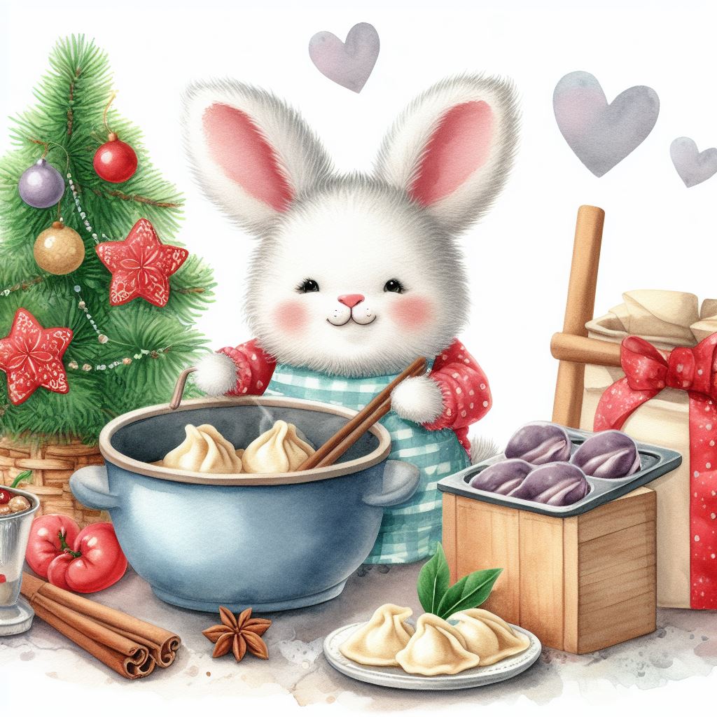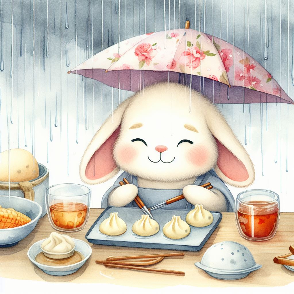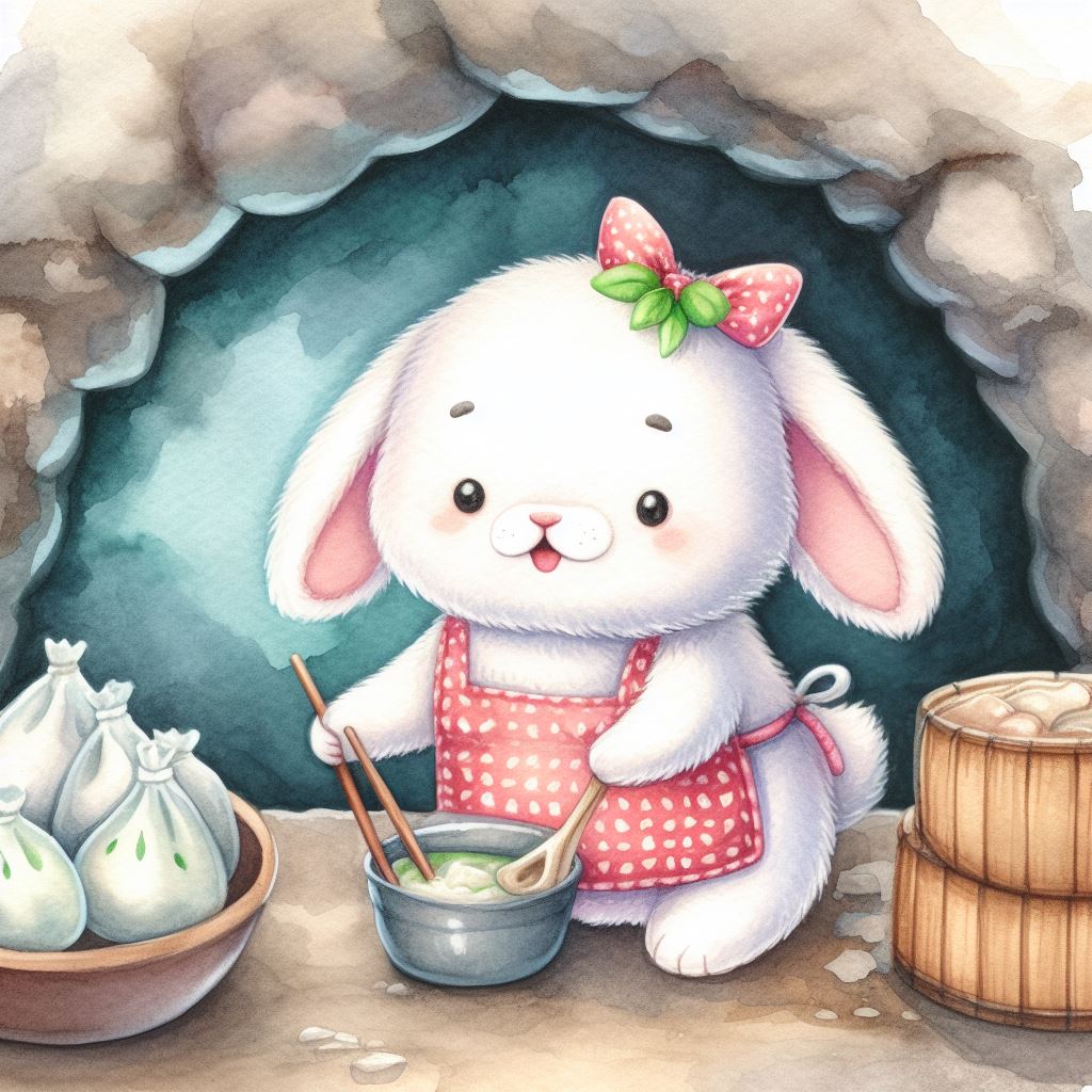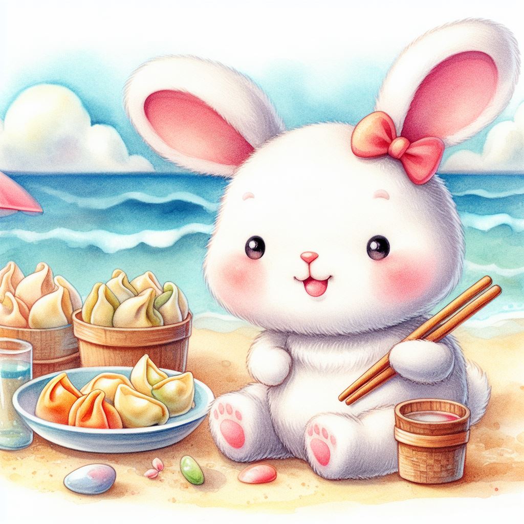 아래는 [만두를 만드눈 토끼, 수채화] 프롬프트를 이용하여서 만든 예시입니다. (산에서, 바다에서, 크리스마스때, 숲속에서 등)