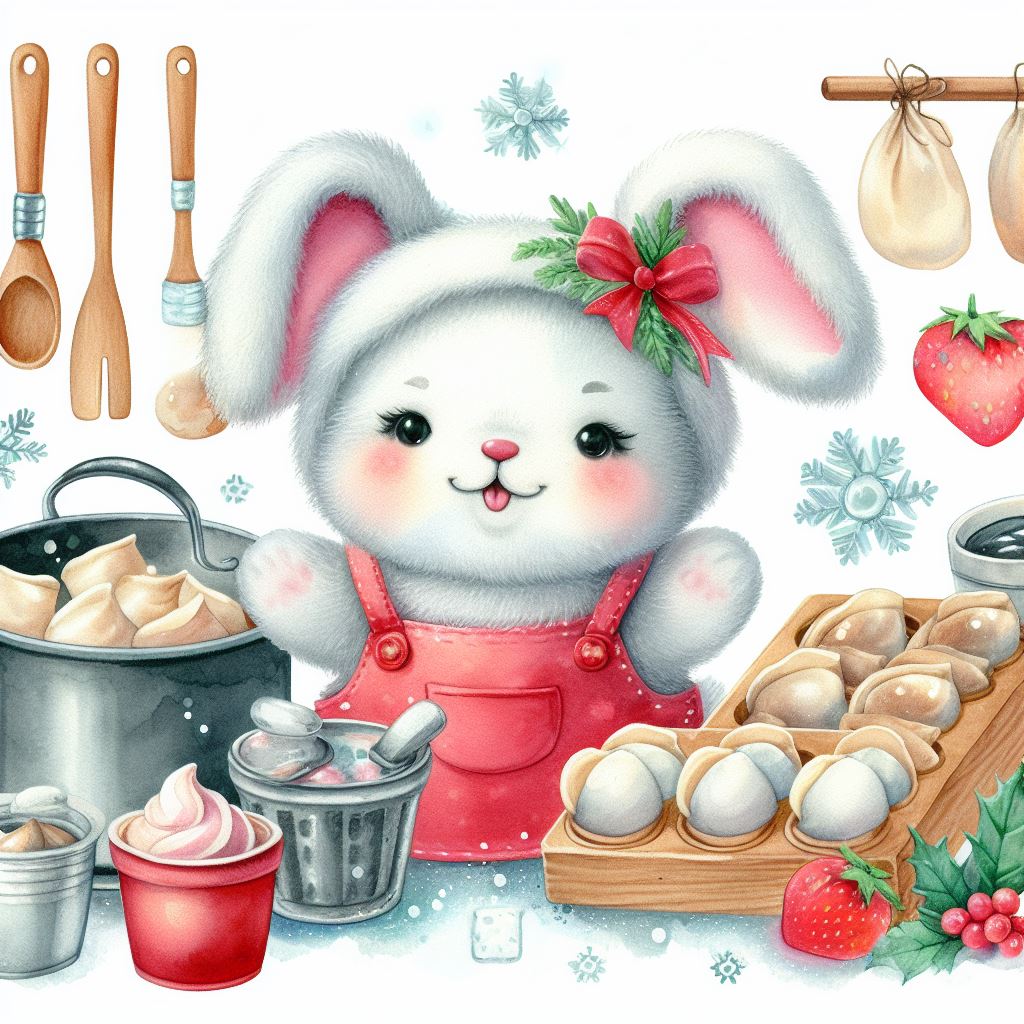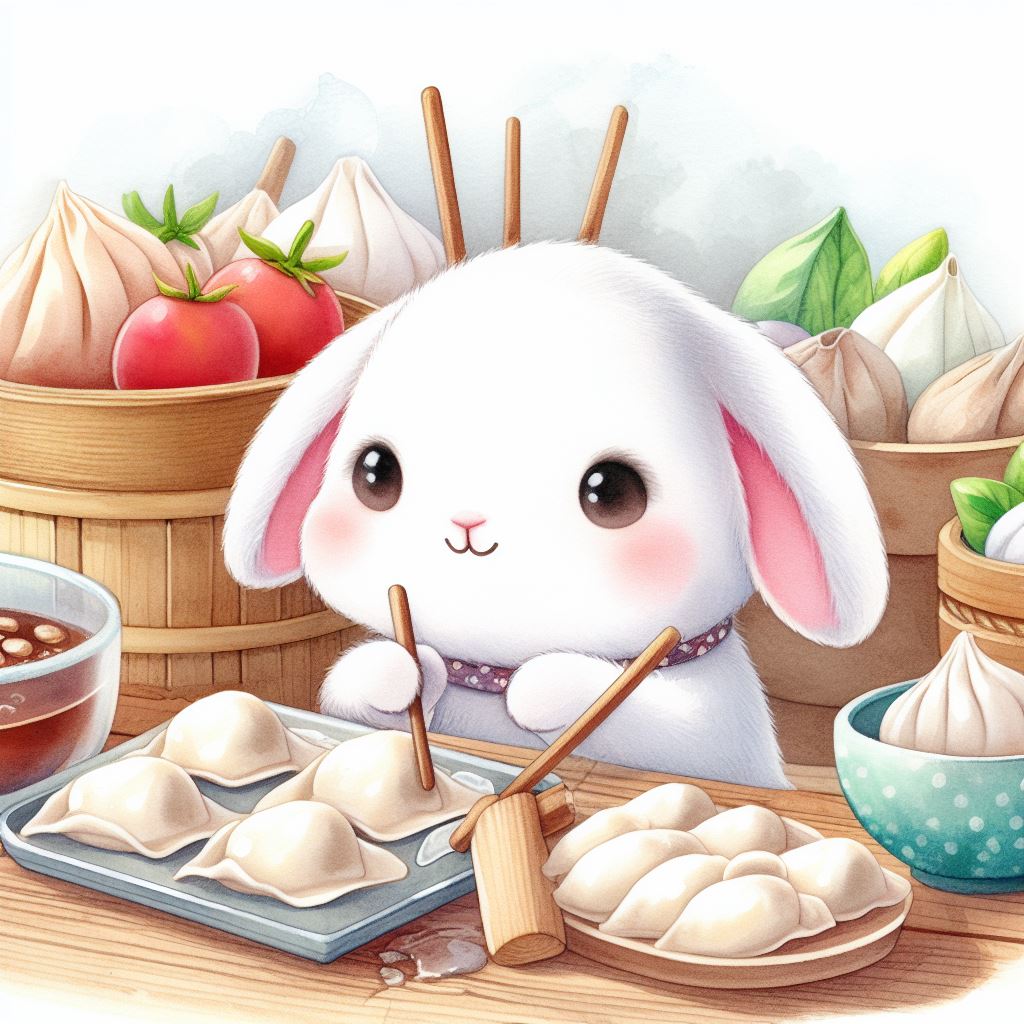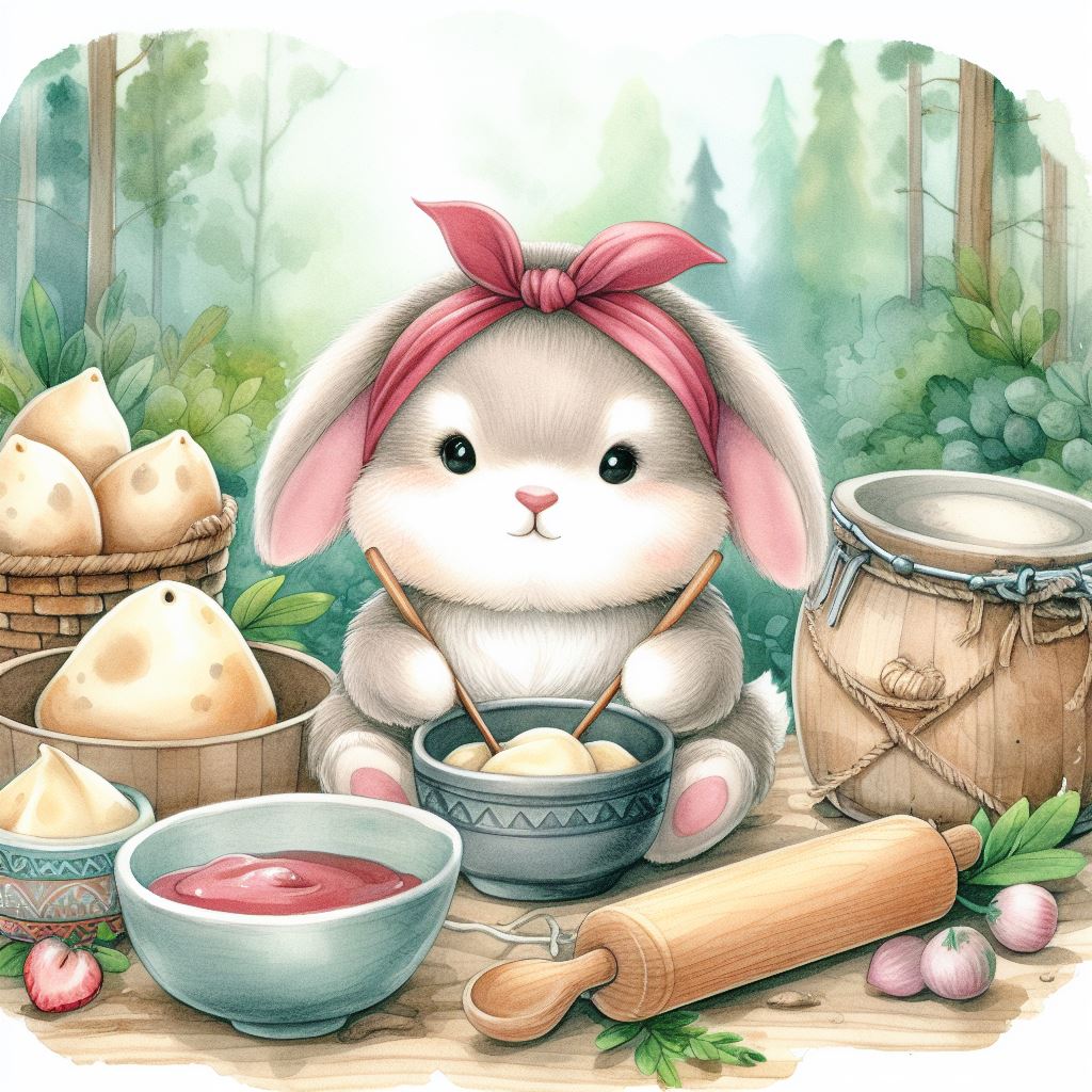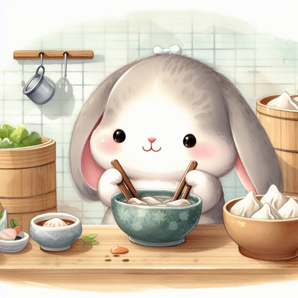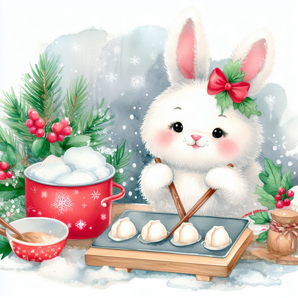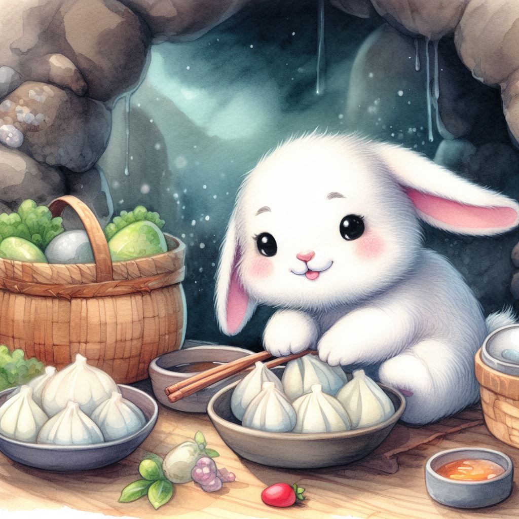 아래는 [만두를 만드눈 토끼, 수채화] 프롬프트를 이용하여서 만든 예시입니다. (산에서, 바다에서, 크리스마스때, 숲속에서 등)