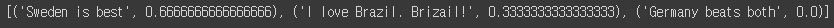 text_data = np.array(['I love Brazil. Brizail!', 'Sweden is best', 'Germany beats both'])