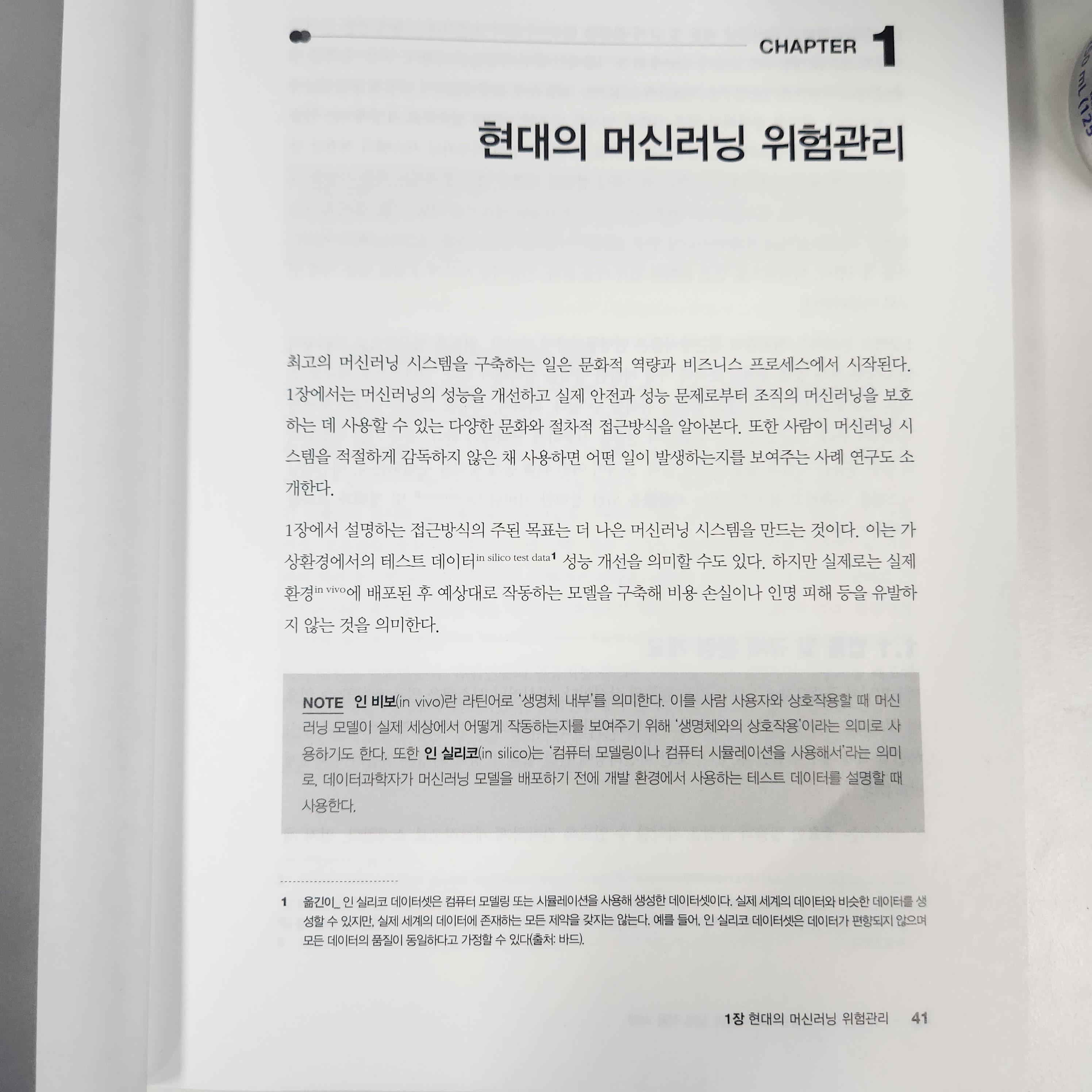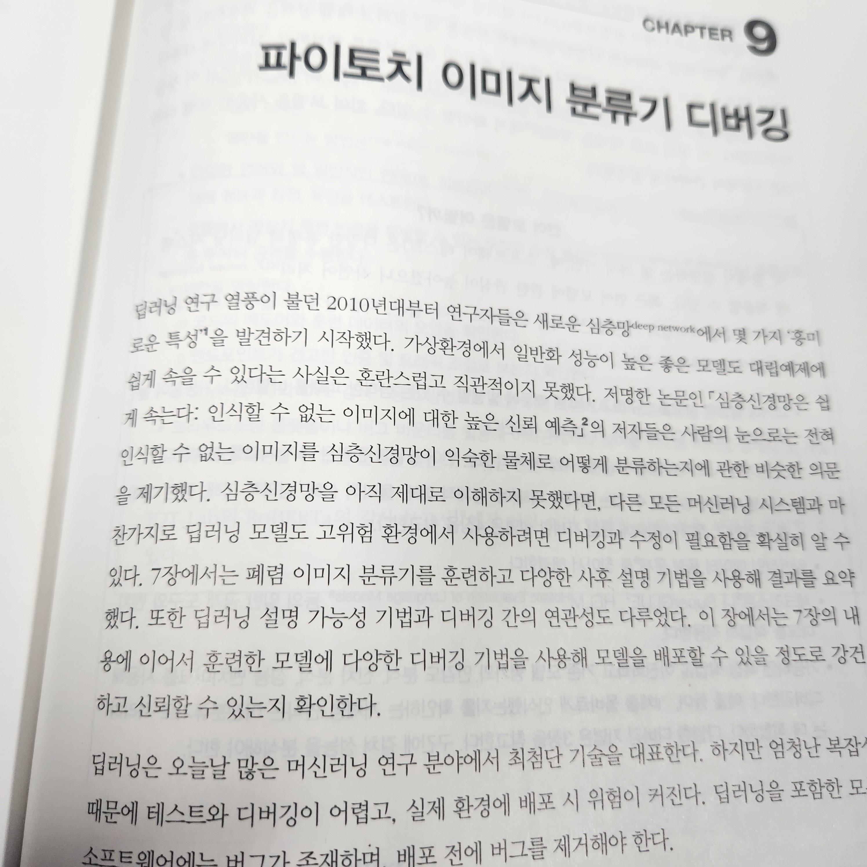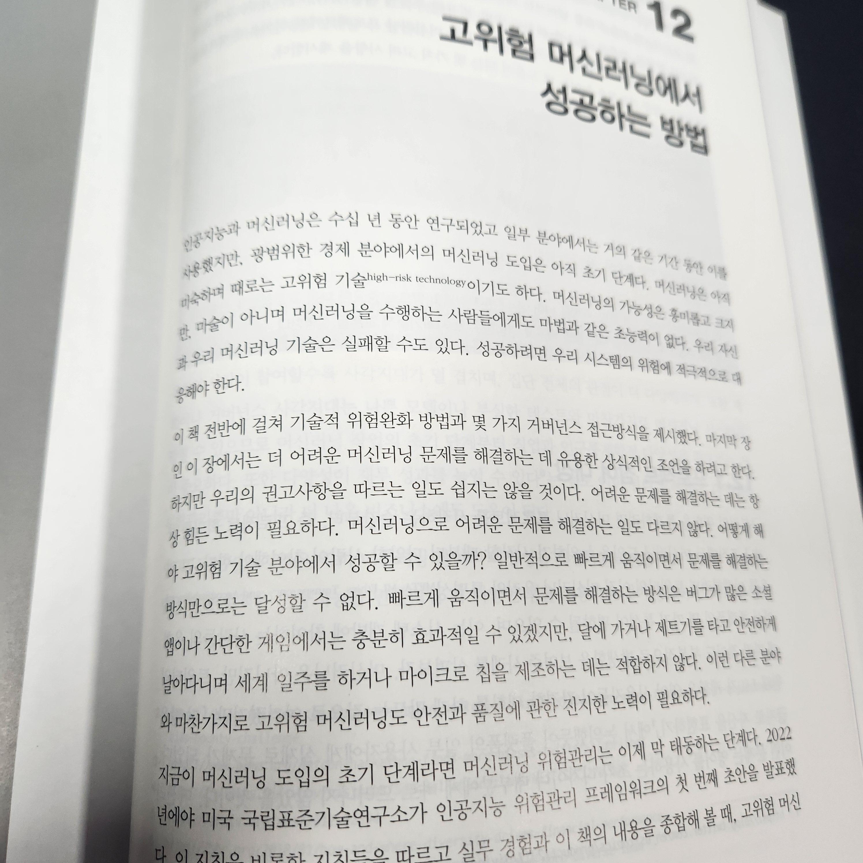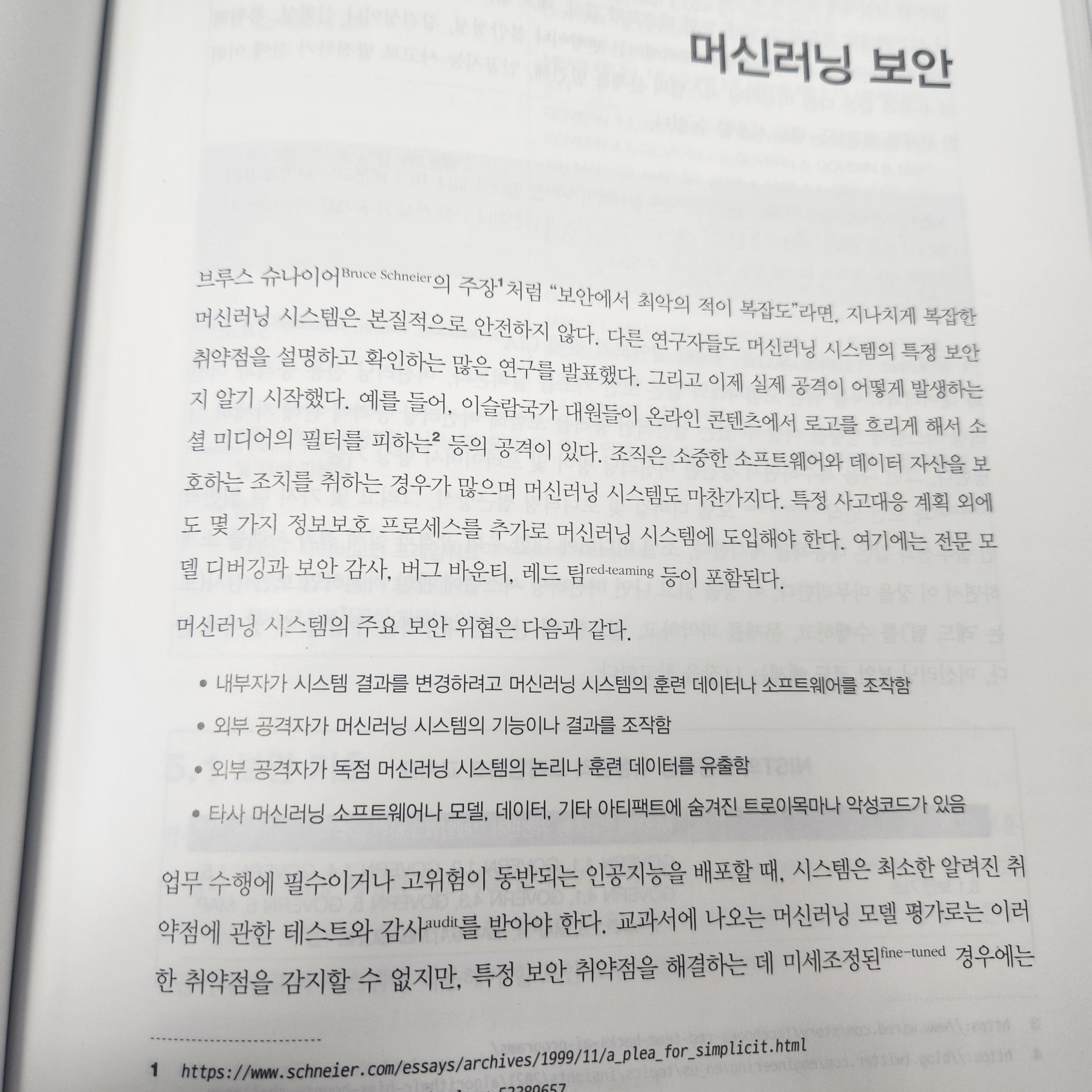 머신러닝을 공부를 하거나 실제 직종에 있는 사람들에게는 필독서라고 생각이 듭니다. 모델을 만들면서 느꼈던 데이터 수집 및 정제, 모델에 리스크를 어떻게 해결할 것인지 이책에서는 모델의 위험관리와 보안 등 신뢰할 수 있는 안전한 머신러닝을 개발하기 위한 방법을 알 수 있습니다.