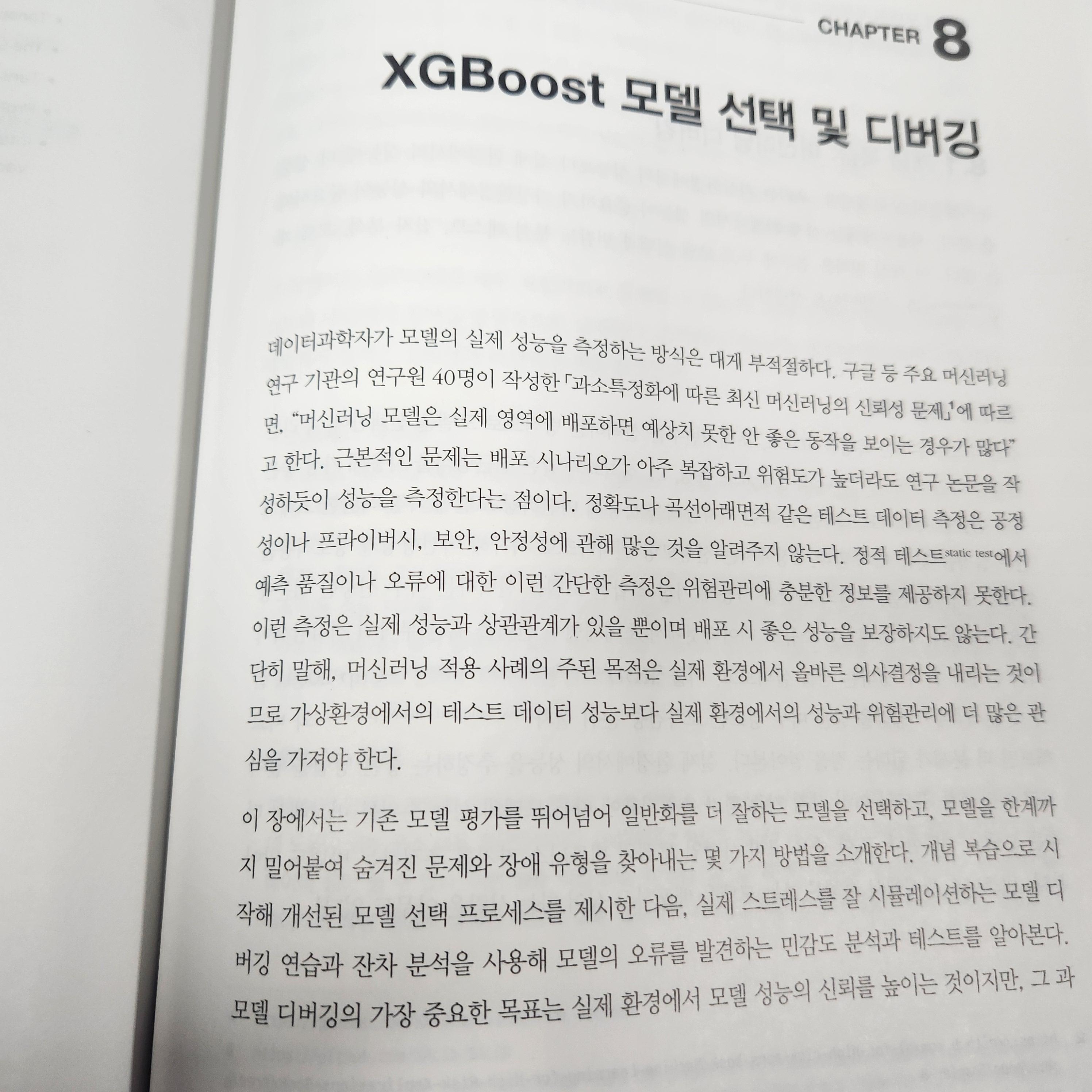 XGBoost 모델을 선택하는 이유와 그 중요성에 대해 깊이 있게 다루고 있다. 저자는 모델의 성능과 안정성을 극대화하기 위해 XGBoost 모델을 추천하며, 이를 통해 발생할 수 있는 다양한 버그를 사전에 식별하고 수정하는 과정의 중요성을 강조한다. 특히, 도메인 전문가와의 협업을 통해 모델을 지속적으로 모니터링하고 유지보수하는 것이 필수적이라는 점을 강조한다. 또한, 모델을 실제 배포한 후에도 꾸준한 모니터링을 통해 문제를 해결하는 것이 성공적인 머신러닝 프로젝트의 핵심이라고 설명한다.